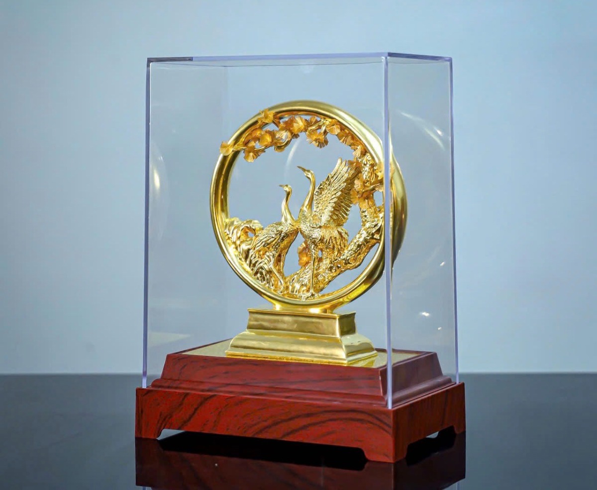 Tranh tùng hạc diên niên dát vàng, món quà quý tặng khách hàng, đối tác