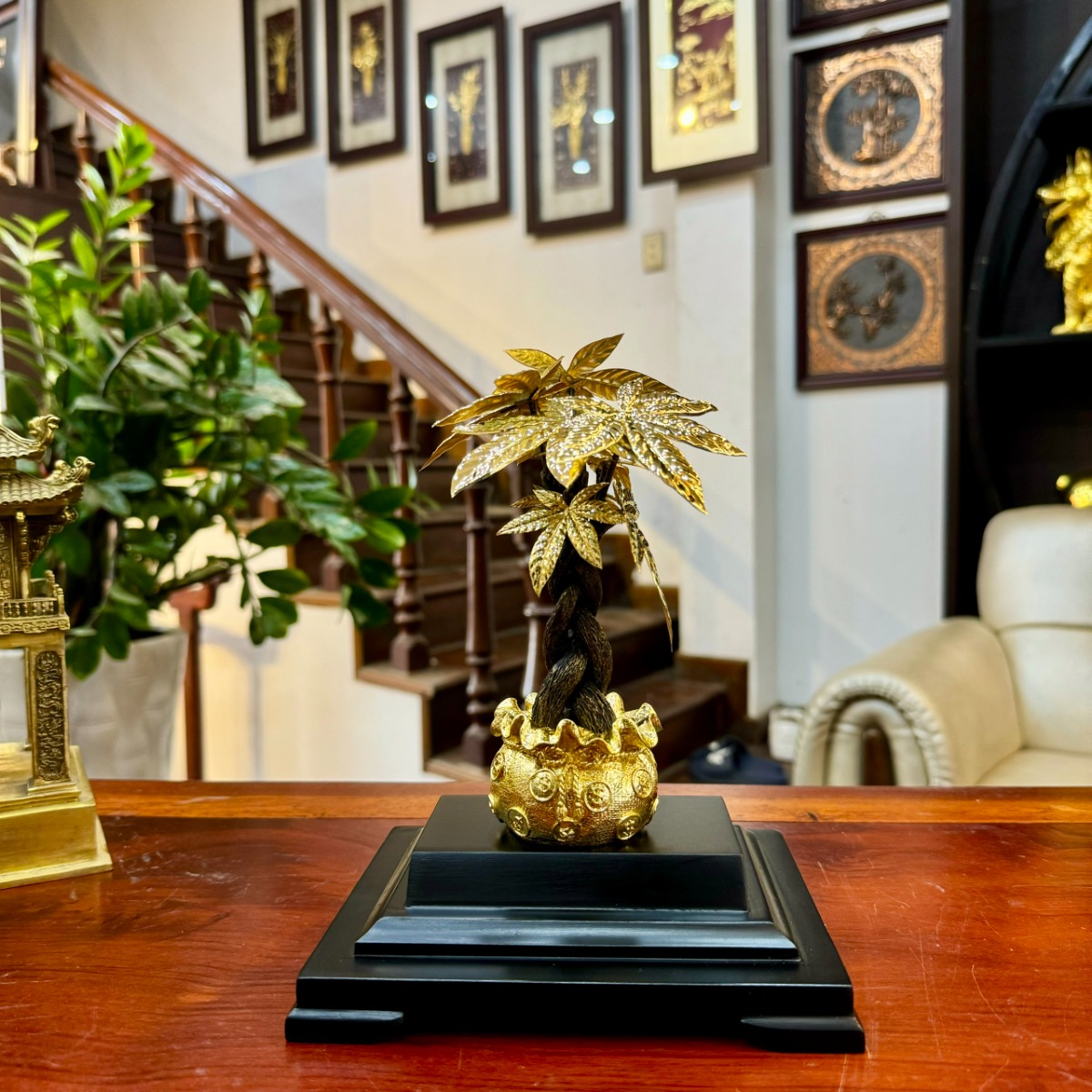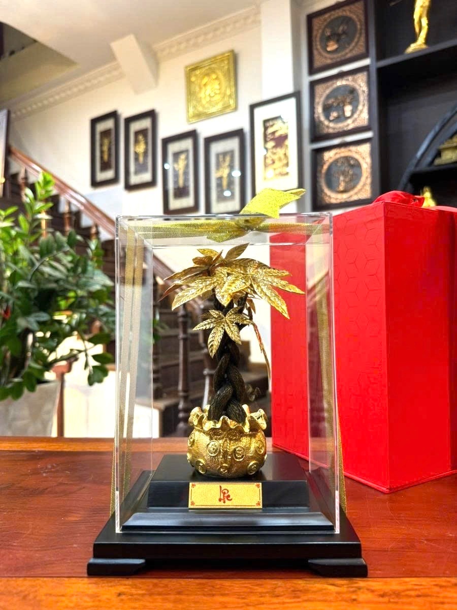 Chậu cây kim ngân dát vàng24K rất thích hợp để trở thành món quà mang tặng sếp hoặc tặng tân gia. Qua vật phẩm này sẽ thể hiện rõ tâm ý của người tặng muốn cầu chúc cho gia chủ được hưởng tất cả sự giàu có, may mắn, tấn tài tấn lộc, tiền vô như nước.