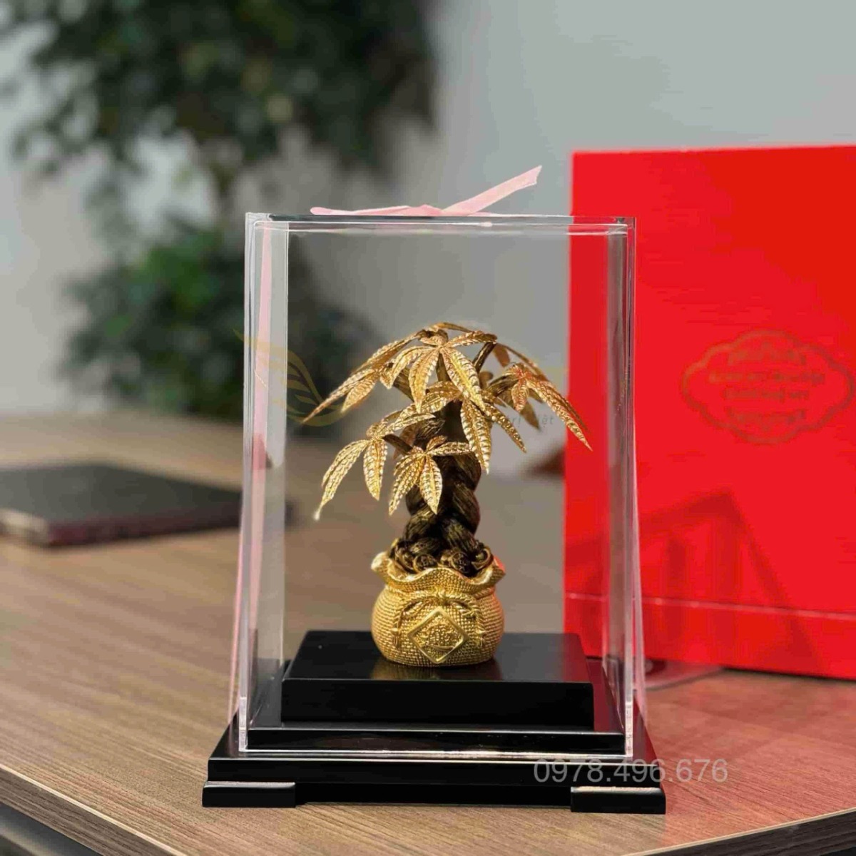 Chậu cây kim ngân dát vàng24K rất thích hợp để trở thành món quà mang tặng sếp hoặc tặng tân gia. Qua vật phẩm này sẽ thể hiện rõ tâm ý của người tặng muốn cầu chúc cho gia chủ được hưởng tất cả sự giàu có, may mắn, tấn tài tấn lộc, tiền vô như nước.