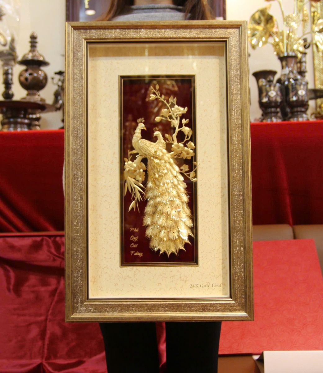 Tranh được chế tác tinh xảo với lớp vàng 24K dát thủ công, tạo hiệu ứng ánh kim sang trọng, bền màu theo thời gian. Mỗi chi tiết từ dáng chim, bộ lông đến bố cục tổng thể đều được hoàn thiện tỉ mỉ, giúp bức tranh trở thành điểm nhấn đẳng cấp cho không gian trưng bày.